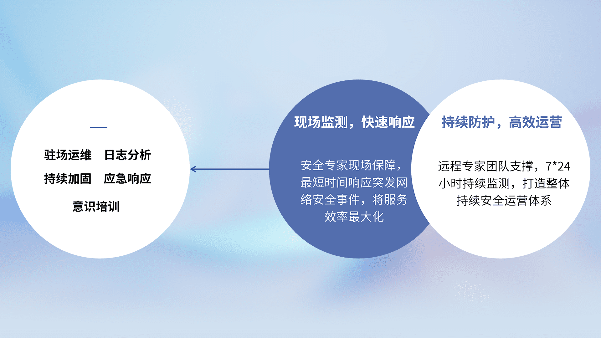 7X24小时持续监测安全事件,保持安全策略有效性,降低资产脆弱性风险,,,精准拦截黑客攻击,,,减少被黑客利用的机会,,第一时间遏制,,,,降低损失。。。。